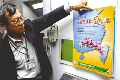 2月19日,臺北金山南路郵局張貼通告,宣布開辦人民幣匯款業務。臺灣“中華郵政公司”昨日上午宣布,即日起開辦人民幣匯款業務。目前臺灣民眾經郵局匯款到大陸,必須先以新臺幣兌換成美元,以美元匯出到大陸,大陸親友領取時,再將美元兌換成人民幣。19日起,臺灣民眾經郵局匯款到大陸直接可兌換成人民幣,比以往減少一次兌換,可降低匯兌風險。圖/CFP