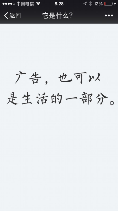 在測試圖中,微信官方表示:廣告是生活的一部分,不是廣告可惡,而是廣告不懂用戶,我們試圖做些改變。