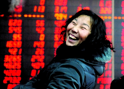 圖為當日在沈陽一家證券公司股票交易大廳,一名股民笑逐顏開。(相關報道詳見三版) 新華社發(張文魁攝)