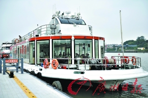 新水巴船艙為全落地玻璃,今日將正式開通運行。記者邵權達 攝