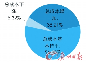 將近38.21%的企業表示今年以來總成本呈現增加狀態,其平均增加幅度達到4.22個百分點。