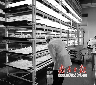 除了制造手段,東莞還有眾多公司開始在制造模式上進行革新。比如東莞市凱鑫農業科技公司就開發出了植物工廠設備,利用他們的設備,可以像生產工業品一樣生產蔬菜。公司總經理蔡增輝告訴記者,植物工廠就是在廠房里,利用LED燈光照射,刺激植物生長的一種生產模式,這一模式如果推廣開來,可以為東莞數量眾多的舊廠房改造提供一種新的途徑。