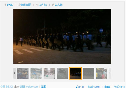 據微博內容顯示,約2000工人從淩晨零點開始,將宿舍、飯堂、車間流水線、超市、大門、電動叉車、警車以及辦公室電腦設備等悉數砸毀,工廠所有保安跑光。一直持續到淩晨6點,有大批特警進廠戒備。