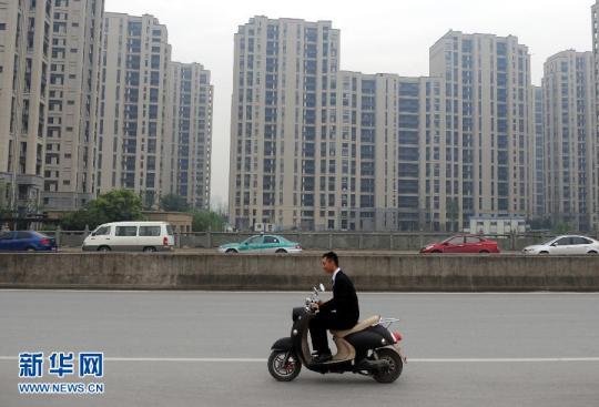4月26日,一位新盤銷售人員騎車奔走在杭州城尋找意向客戶。當日,浙江杭州樓市迎來今年最大的一波開盤潮,12家樓盤集中在周末開盤。同時,杭州樓市的第二波降價潮已經彌漫,降價、低開、特價房等各種促銷手段,層出不窮。杭州樓市繼3月份的“馬年首降”以後,在4月下旬引發第二波降價,特別是杭州臨安的青山湖高端住宅板塊大幅降價,讓原本一直堅挺的高端住宅市場卷入了本輪的降價。“別墅賣出公寓價”成為了杭州樓市今年第二波降價中的標志。杭州官方公布的統計數據顯示:今年一季度,杭州市區商品住房成交均價同比下降11.3%,而成交量為10112套,同比下降了37.8%。目前,杭州商品住房成交面臨著量價齊跌的狀況。另外,杭州樓市的庫存壓力仍在不斷攀升,截至3月底,杭州市區可售商品住房76004套,可售面積998.1萬平方米,同比增加36.2%、32.6%。在4月下旬杭州市舉行的2014年一季度經濟形勢分析會上,有官方人士分析說:“杭州房地產市場面臨下行風險。” 新華社記者王定昶攝