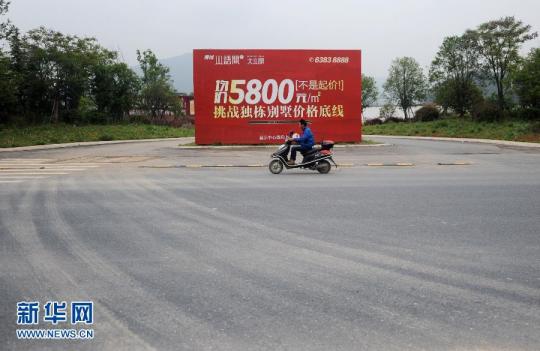 正在大幅降價的杭州一別墅樓盤(4月26日攝)。該樓盤已銷售多年,但入住率很低。當日,浙江杭州樓市迎來今年最大的一波開盤潮,12家樓盤集中在周末開盤。同時,杭州樓市的第二波降價潮已經彌漫,降價、低開、特價房等各種促銷手段,層出不窮。杭州樓市繼3月份的“馬年首降”以後,在4月下旬引發第二波降價,特別是杭州臨安的青山湖高端住宅板塊大幅降價,讓原本一直堅挺的高端住宅市場卷入了本輪的降價。“別墅賣出公寓價”成為了杭州樓市今年第二波降價中的標志。杭州官方公布的統計數據顯示:今年一季度,杭州市區商品住房成交均價同比下降11.3%,而成交量為10112套,同比下降了37.8%。目前,杭州商品住房成交面臨著量價齊跌的狀況。另外,杭州樓市的庫存壓力仍在不斷攀升,截至3月底,杭州市區可售商品住房76004套,可售面積998.1萬平方米,同比增加36.2%、32.6%。在4月下旬杭州市舉行的2014年一季度經濟形勢分析會上,有官方人士分析說:“杭州房地產市場面臨下行風險。” 新華社記者王定昶攝