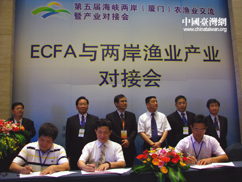 ECFA與兩岸漁業產業對接會項目簽約現場。(中國臺灣網 馬迪 攝)