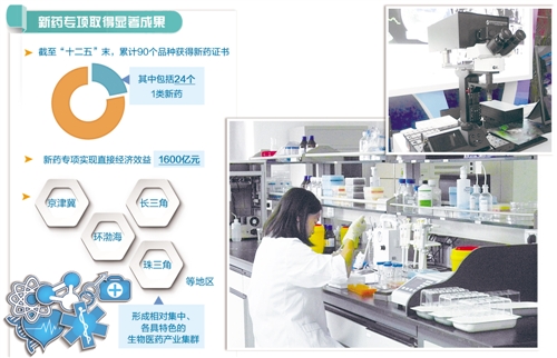 如今,隨著重大新藥創制國家科技重大專項的實施推進,新藥創制格局發生改變,一批藥物創制關鍵技術和生產工藝得以突破,我國自主研發的創新藥物登臺亮相,不但在一些領域打破了國外專利藥物壟斷,而且藥品安全性、可靠性提升。醫藥研發正由倣制逐漸走向創制,我國正從一個醫藥大國向醫藥強國邁進。