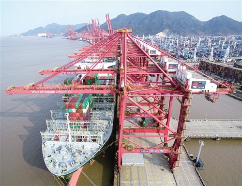 這是2月16日拍攝的寧波舟山港穿山港區集裝箱碼頭。2016年,舟山港集裝箱吞吐量達到2156萬標準箱,同比增長4.5%,增幅居全球五大集裝箱港口首位。到2020年,寧波舟山港計劃將初步建成全球一流的現代化樞紐港,全港貨物吞吐量力爭達到10億噸,躋身全球主要的集裝箱幹線港前三名。