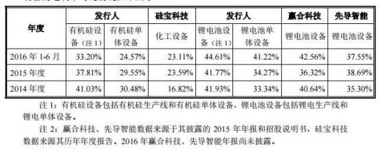 報告期,金銀河細分產品與硅寶科技有機硅設備、贏合科技和先導智能鋰電設備的毛利率對比情況如下所示: