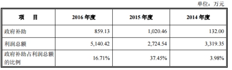 報告期,計入當期非經常性損益的政府補貼的金額呈增長趨勢,佔報告期利潤總額的比例分別為 3.98%、37.45%和 16.71%。