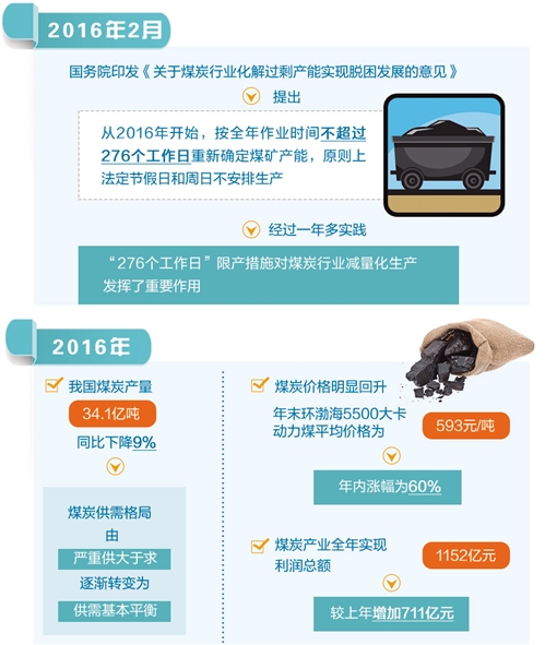 去年2月份,國務院印發《關于煤炭行業化解過剩產能實現脫困發展的意見》,提出“從2016年開始,按全年作業時間不超過276個工作日重新確定煤礦產能,原則上法定節假日和周日不安排生產”。此後,國家發展改革委也發文要求所有煤礦按照276個工作日重新確定生產能力。