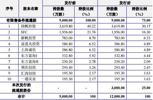 揚帆新材于2017年3月29日在深交所發布最新版招股說明書,于2017 年 4 月 12 日登陸深交所創業板。股票簡稱揚帆新材,股票代碼300637,首次公開發行股票數量3,000 萬股,首次公開發行後總股本12,000 萬股,主承銷商為海通證券,人本次發行新股募集資金總額為 30,060.00 萬元,扣除發行費用5,457.00 萬元後,募集資金凈額為 24,603.00 萬元。