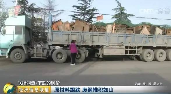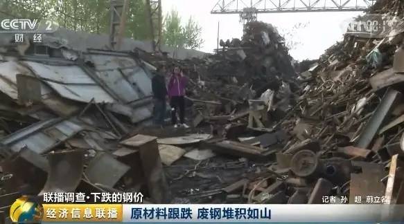 鋼材價格下滑,作為鋼材的原料之一,廢鋼也跟著走跌,很多鋼廠門前都排滿了運送廢鋼的車輛,在一些廢鋼回收點,廢鋼已被堆成了山。