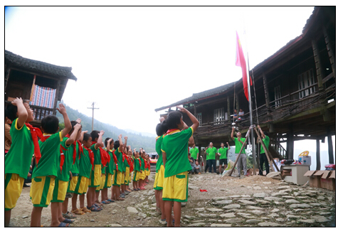 上一屆“心路啟程”公益活動,孩子們穿上捐贈的新校服舉行升國旗儀式。