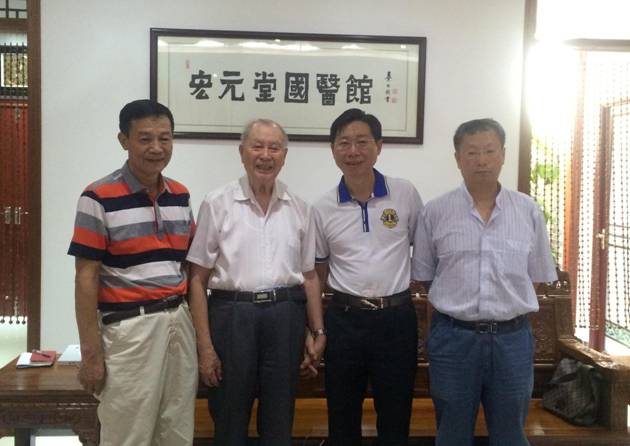 ·6月22日,解放軍總後勤部“科學技術一代名師”、 第六屆全國人大代表、中國工程院院士鐘世鎮(左二)到訪東莞宏元堂中醫院。宏元堂健康產業集團董事長、宏元堂中醫院創始人陳宏賓(右二)一行陪同。