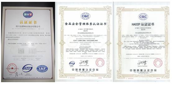 先後榮獲質量信譽等級“AAA級企業”,“四川省著名商標”,“四川省名牌產品”,四川省食品安全生產(首批)示范單位等認證,品質有保障。
