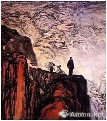 劉先生的《紅色的蒼桑》(圖七),似千仞險山絕頂萬壑深溝無涯,似層層絕壁深淵什麼都不可逾越。在這樣的山溝中遍燃烈火染紅大地,華夏黃土高原的生命在燃燒。有如原中國美協常務理事、中國美協陜西分會主席石魯先生,1958年為紀念新中國建國十周年和中國革命歷史博物館開館,分配給的創作任務《轉戰陜北》(圖八)宏偉壯觀磅薄大氣。《轉戰陜北》是領袖毛澤東在70年前關注著並拯救大好河山,《紅色的蒼桑》是今天的人民登頂關注並建設大好河山。他們都用油性顏料在宣紙上作畫,都“任性”的堅持著洋為中用的探索,讓中國畫走向世界,弘揚著中國傳統繪畫美學思想的“任性”。