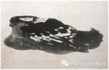 劉佑局先生是中國傳統繪畫思想繼承者,是當代中國畫藝術創新的探索者。《荷煙印象》(圖九)堅定地遵循著中國傳統繪畫的基本原則,在具象的荷葉的基礎上抽象與誇張,人為暈散傳承中國水墨畫在宣紙上自然暈散,荷花與荷葉在風動中相互侵染而暈散交融,黑色的線條咋看淩亂,實在是表現荷桿的搖曳。用西方油畫丙烯染料作施彩媒介,使得宣紙上的色彩厚實而鮮艷,在中國傳統含蓄文化思想的表現上多了一點張揚,我們會很自然地想起荷塘月色的景色。讀過朱自清的《荷塘月色》,也會浮想“微風過處,送來縷縷清香,倣佛遠處高樓上渺茫的歌聲似的。這時候葉子與花也有一絲的顫動,像閃電一般,霎時傳過荷塘的那邊去了。葉子本是肩並肩密密地挨著,這便宛然有了一道凝碧的波痕。”的畫面。這種境界有如清“八大山人”朱耷《眠鴨圖》,咋看似一只鞋子,細觀是一只取景逆光下扭頭酣睡的鴨子(圖十)。劉佑局更放手自己的繪畫語言“任性”,這種創新引起轟動是意料之中的,引起專業人士重視其現象地研究是必然的,劉佑局先生基于現實升華後夢幻般的《荷煙印象》繪畫,是東西方文化彼此求同存異文化認同的探索,是對中國傳統水墨再創新的一種渴望和實踐。