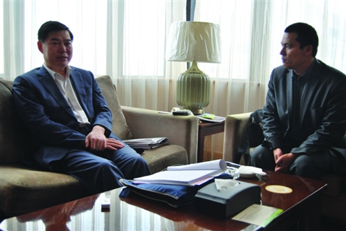 山東省委委員,濟南市委副書記、市長楊魯豫(左)接受本報記者專訪
