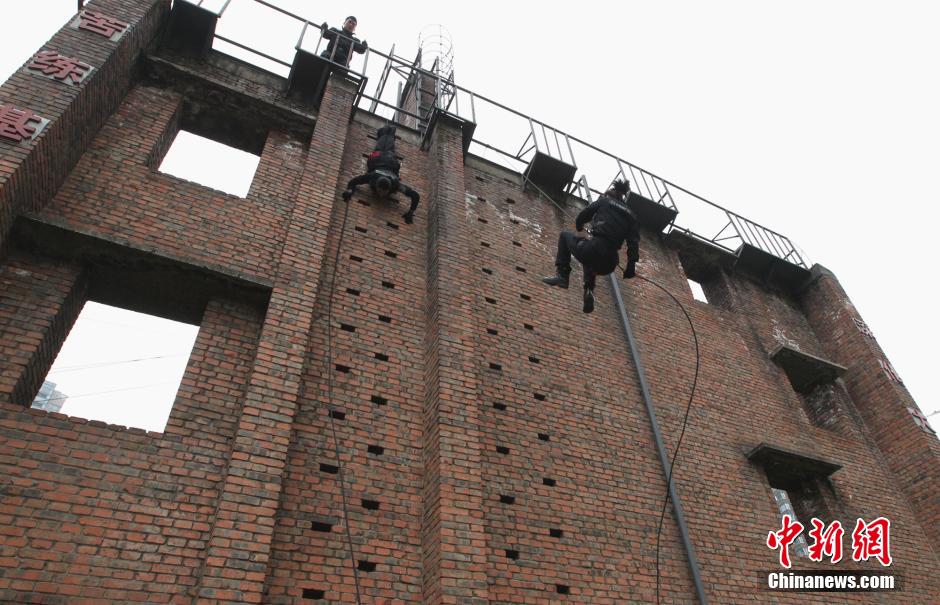 圖為重慶女特警表演高空速降。周毅 攝