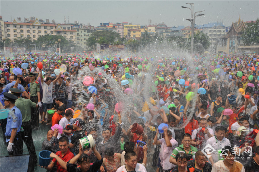 數萬名群眾和遊客共聚潑水廣場。來源:雲南網