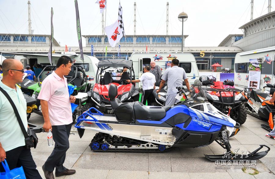 7月16日,參觀者在汽博會現場參觀展出的雪地越野摩托車。新華社記者許暢攝