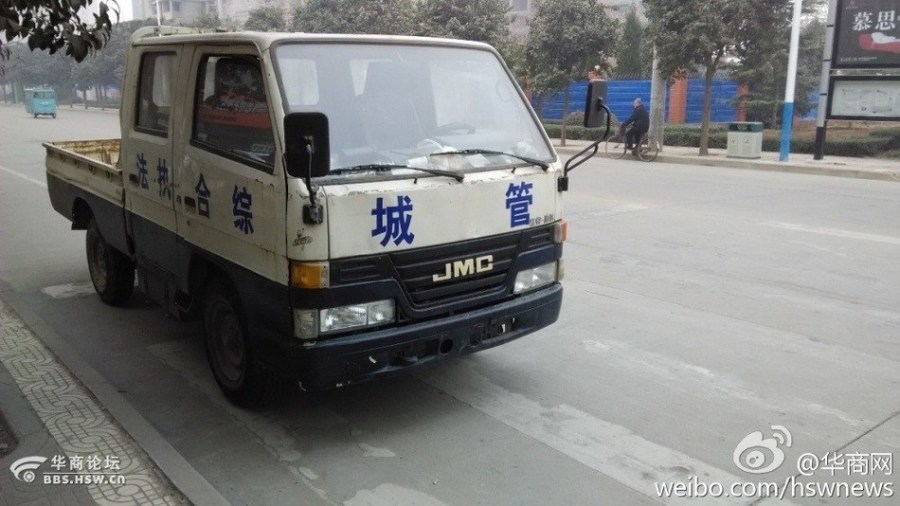 圖為事發現場的城管執法車。