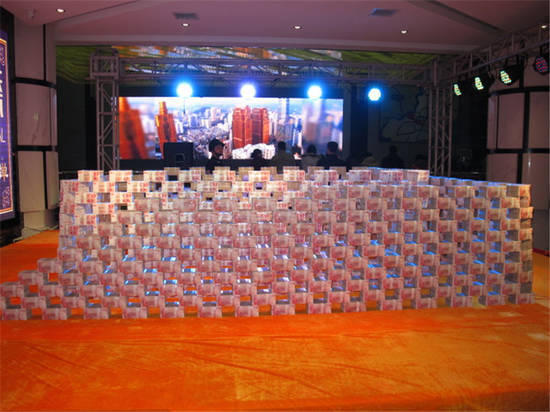 2月2日訊,貴陽清鎮市一售樓部,開發商堆1億現金為農民工發工資。在售樓部現場,一捆捆鈔票被整齊擺放在大廳。據現場的工作人員介紹,現場擺放的現金有整整一億。記者還是第一次看到一億現金擺放在一起的情景。