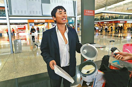 在機場堅持了大半天的吳加永饑腸轆轆,喝了很多涼水的他只能在機場無助地睡覺,身心具乏。突然,吳加永想到了自己在工地打工時買的電飯煲里還有米,加上衛生間的涼水,吳加永向機場的工作人員尋求幫助,希望能夠在機場煮飯填飽肚子。吳加永告訴記者,他一次要煮很多米飯,“一下煮很多,還不舍得吃,中午都不吃飯,不知道什麼時候能夠回家,晚上吃點剩米飯就趕緊睡覺。”然而吳加永不知道,他在機場煮飯的舉動引起了機場和當地媒體的關注,于是便有了網上傳出的山東籍男子滯留香港機場煮米飯的消息。