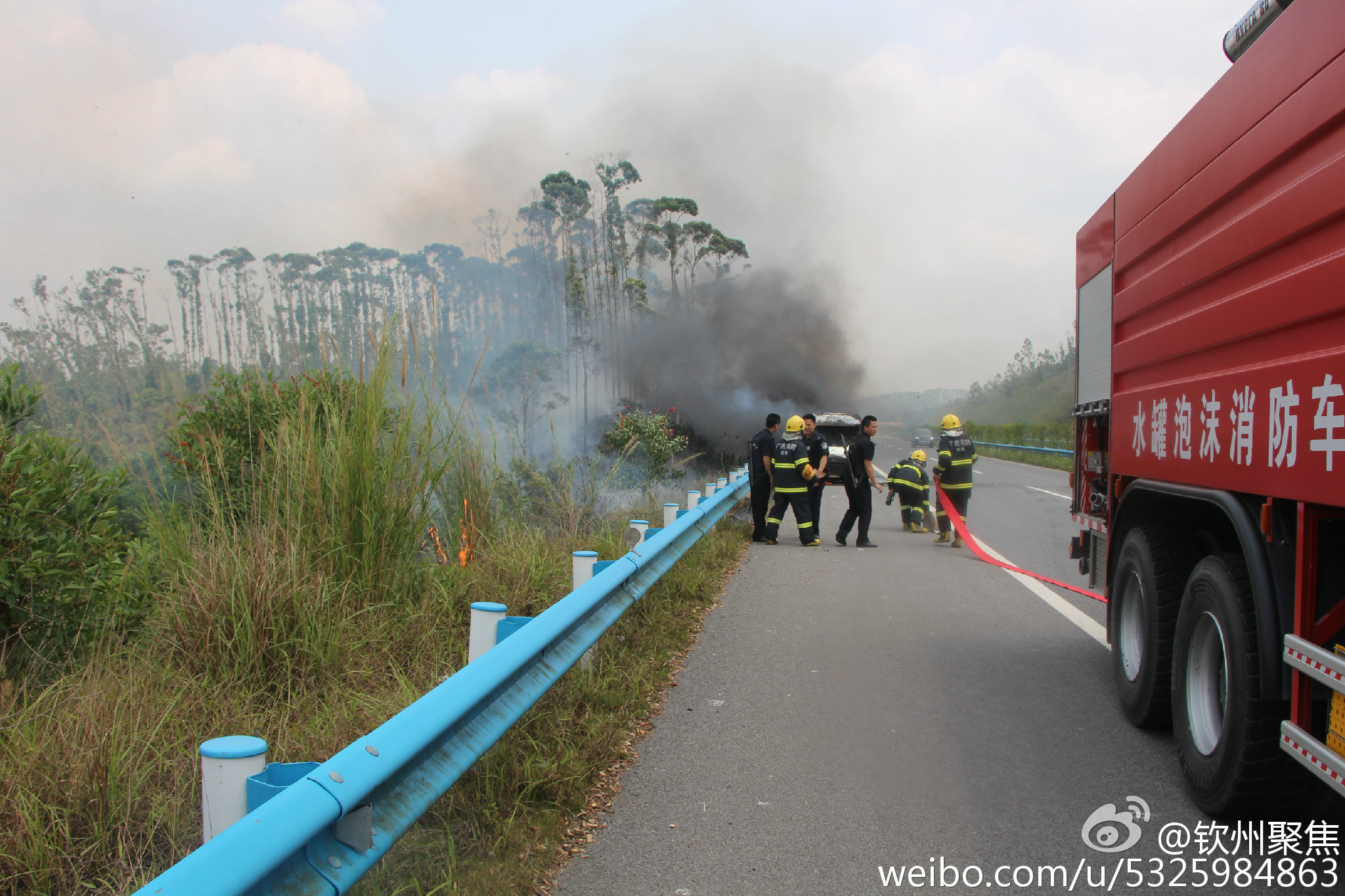【廣西運鈔車起火燒毀11箱鈔票並引燃山火】4月15日11時許,六景至欽州港高速距金桔收費站約1公里處一輛由南寧開往中馬欽州產業園區的運鈔車起火,大火引燃了11箱鈔票和路邊的灌木叢,引發了熊熊山火。火勢隨後被趕到的消防官兵撲滅。(張冠年)