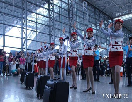 成都雙流國際機場空姐熱舞小蘋果 呼吁人們文明乘機安全出行