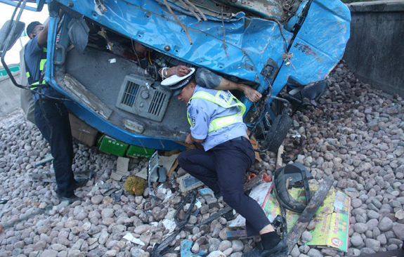 現場救援力量有限,雲南紅河交警倪海庭為減少傷者疼痛,用身體托起傷員,直至3小時後傷者獲救。