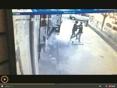 北京青年報記者注意到,從毆打開始到結束,有兩名路人經過事發現場但均未採取任何措施。