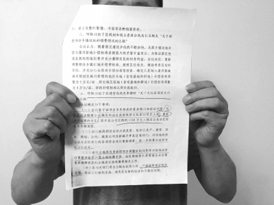 崔懷彬手里拿著區政府決定收回土地開發權的會議紀要。京華時報記者 常鑫 攝