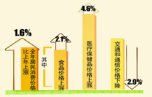 全年居民消費價格比上年上漲1.6%,其中食品價格上漲2.1%,醫療保健品價格上漲4.6%,交通和通信價格下降2.9%。工業生產者出廠價格 下降1.3%,工業生產者購進價格下降5.6%。全年社會消費品零售總額2183.65億元,比上年增長12.0%。其中,商品零售額1977.46億元,增長11.9%;餐飲收入206.19億元,增長13.0%。在限上商品零售額中,建築及裝潢材料類、家具類大幅上漲,化妝品類、家用電器及音像器材降幅明顯。 29家網絡零售企業零售額增長67.1%。全年進出口總額203.38億美元,比上年增長1.3%。其中,出口137.08億美元,增長9.6%;進口66.29億美元,下降12.4%。機電產品、高新技術產品出口大幅增長。年末境外世界500強企業在合肥投資設立40家外資企業,新增3家。