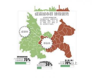 盡管目前批復方案尚未對外公布,成都市發改委相關人士告訴記者,根據測算,成渝城市群覆蓋范圍佔據四川和重慶面積的30%,人口密集度是兩地的75%。以2014年兩地經濟發展情況為例,經濟總量更是佔到了70%以上。
