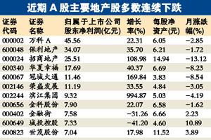 在二級市場上,以萬保招金為代表的地產股9月表現不佳,截至目前,A股地產指數已經連續下跌了兩周,上周下跌4.08%,本周也再度縮水了2%。而9月份,地產股也大幅跑書上證指數6個多百分點。