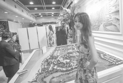 面臨高庫存壓力,此次房博會眾多參展房企為推銷自己的樓盤不惜使出渾身解數。而廣大購房者面對充足的房源選擇,“觀望”居多,下單者少。圖為一家參展房企請來模特在樓盤“擺姿”,以吸引購房者關注。   記者 韓傳號 攝