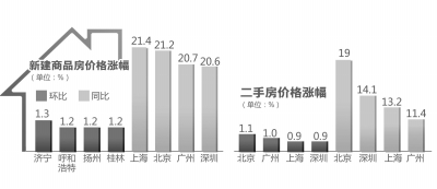 國家統計局昨天公布的數據顯示,10月份70個大中城市中,僅溫州新建商品住宅(不含保障性住房)銷售價格同比下跌,其余69個城市房價同比均上漲。其中,上海同比上漲21.4%,居全國之首。此外,北京、廣州、深圳等一線城市新房價格漲幅繼續超過20%。市場人士分析指出,房價短期內將仍處于持續上漲狀態,但未來更多城市將強化調控政策或會使房價漲幅收窄。