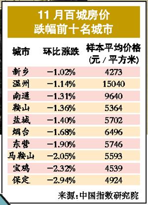 中國指數研究院報告顯示,三四線城市樓市跌勢進一步明顯。2013年11月,住宅價格環比10月下跌城市個數為31個,較上月增加7個。