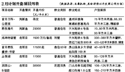 據亞豪機構統計,截至目前,2月份北京僅有6個項目存在開盤計劃,其中包含首開萬科·公園里、熙悅春天兩個純新盤項目以及首開熙悅睿府·書香、鴻坤林語墅、眾美城、潤西山·B組團四個老項目後期。繼1月份之後,2月份的市場增量將再次探底。