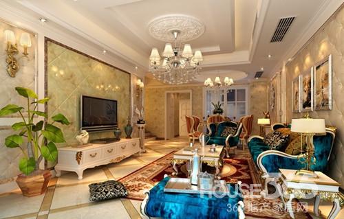 客廳電視背景牆:新古典客廳的設計,電視背景牆也是一大亮點,這個角度還可以隱約看到電視背景牆的紋路。