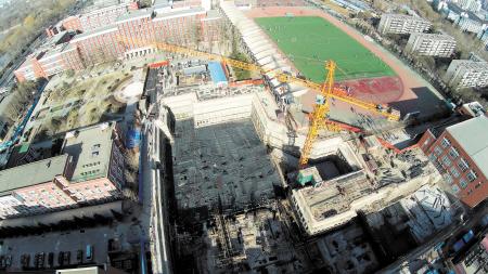 事故現場位于清華附中體育場南側,記者看到這里挖了十余米深的坑,四周堆放著很多建材。