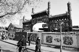 昨天上午,北京晨報記者來到地鐵西四站,剛剛走出地鐵站就見到了一座七八米高的牌樓矗立在路旁,頻頻引得路過的市民駐足觀看。
