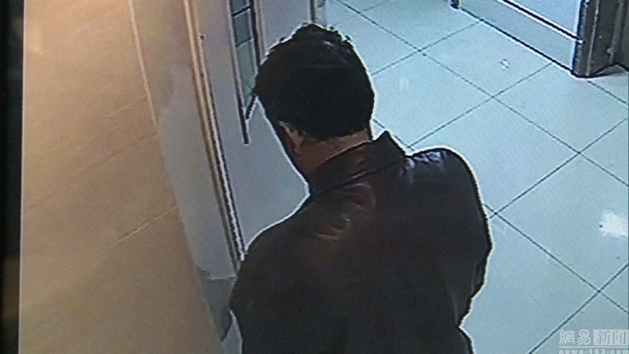 經過比對,民警發現該男子同該樓一住戶相貌相似,隨後上門搜查,在房間內找到了該男子的背包,包內發現了36把門把手,並當場將該男子抓獲。圖為監控畫面。