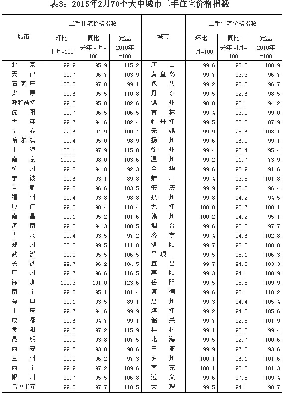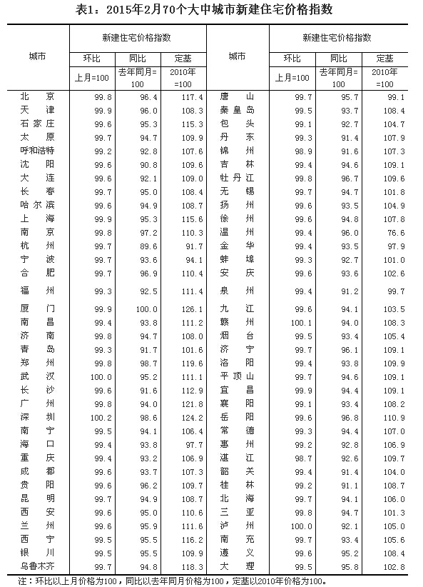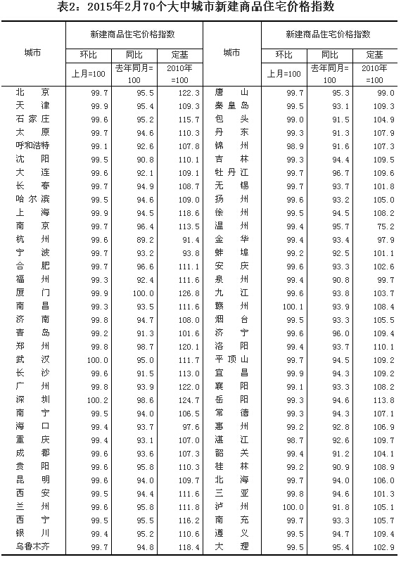 2015年2月份70個大中城市住宅銷售價格變動情況