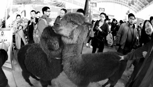 在當天的房交會上,兩只呆萌的羊駝成為現場最大的“明星”。這一棕一黑兩只羊駝一亮相,便吸引無數市民駐足。市民趙小姐告訴沈陽晚報、沈陽網記者,看到羊駝是她此次觀展的意外收獲,她一定要與羊駝合個影。兩只羊駝也非常配合,無論誰來合影都表現得很乖。羊駝的主人表示,黑色的羊駝膽子相對較小,從未見過這麼多人,剛進展廳時一度趴在地上耍賴不走,而且不高興的時候還會吐口水。“你們照相可以,但不要惹毛它,否則可能會被它吐到。”