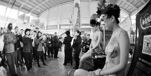 和兩只羊駝相比,另一家樓盤的促銷手段更加火辣,該樓盤選擇了在現場大秀人體彩繪。現場,兩名戴著面具的妙齡女郎半裸著坐在該品牌樓盤的宣傳口處,身上只穿一件短裙。兩名女郎的身上畫著粉紅的牡丹和黃色的非洲菊,熱烈奔放,惹得大批市民拍照。也許是因為羞澀,兩名女郎全程都低著頭,目無表情。記者發現,兩位女郎的後背和手臂處都貼上了該樓盤的名稱和電話號碼,一些市民邊看邊竊竊私語,“開發商為了賺人氣也太拼了吧。”“大庭廣眾弄人體彩繪也太香艷了吧。”