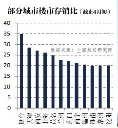 上海易居研究院數據也顯示,截止4月初,在監測的35個城市中,按照目前去化速度,仍有12個城市消化本地樓市庫存所需時間超過20個月,西安、天津、煙臺超過27個月。