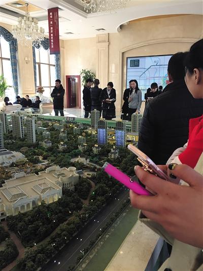 本周三,購房人在燕郊某樓盤看房。據悉,該項目3月新一期的開盤價格將比之前上漲2000元/平方米。